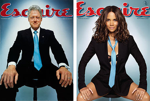 In November 2008, Esquire’s Sexiest Woman Alive, Halle Berry, recreated a classic Esquire cover from December 2000, featuring Bill Clinton.