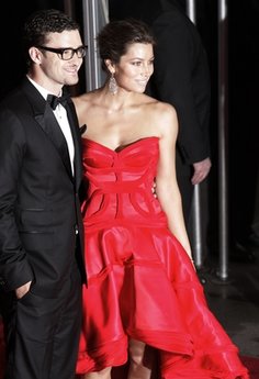 FWD409 Justin Timberlake and Jessica Biel arrive at the Metropolitan Museum of Art Costume Institute Gala, The Model as Muse: Embodying Fashion, in New York on Monday, May 4, 2009. (Fashion Wire Daily/Grant Lamos IV)
